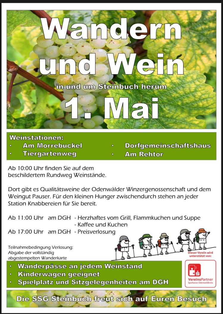 Dorfgemeinschaftshaus Steinbuch, Freitag, 01. Mai, "Wandern, Wein und Bier"